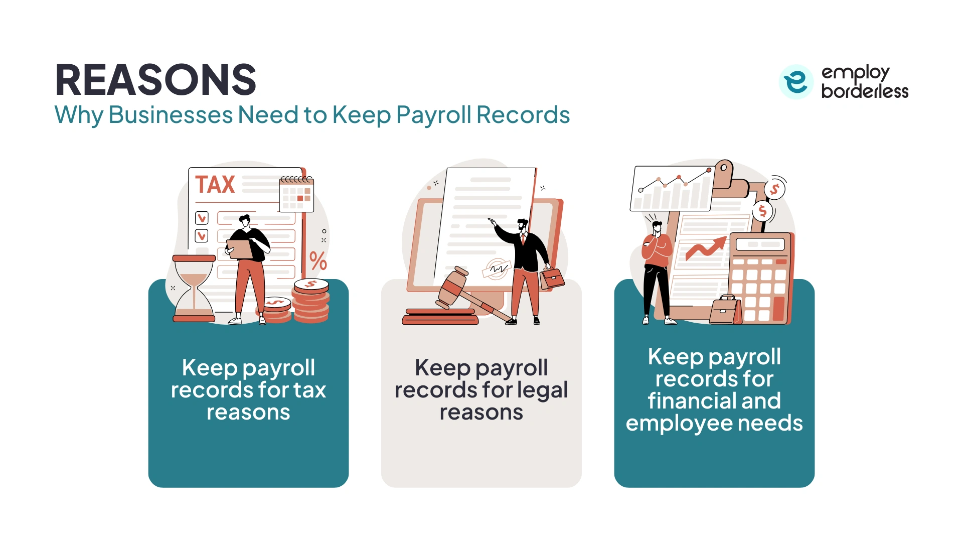 Businesses need to keep payroll records for tax reasons, legal reasons, and financial and employee purposes.